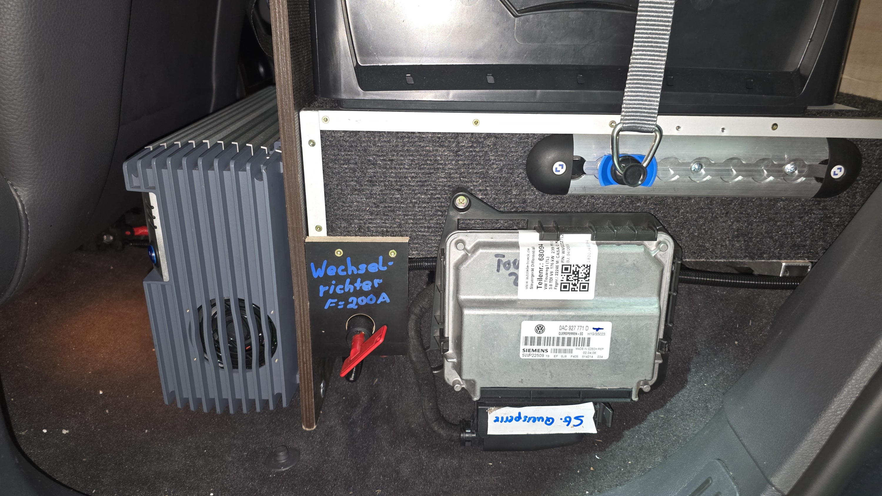 Die Hecksperre habe ich nachgerüstet. Der einfacheren Erreichbarkeit wegen wurde das Steuergerät kurzer Hand an die Seite versetzt, gleich neben den Wechselrichter.